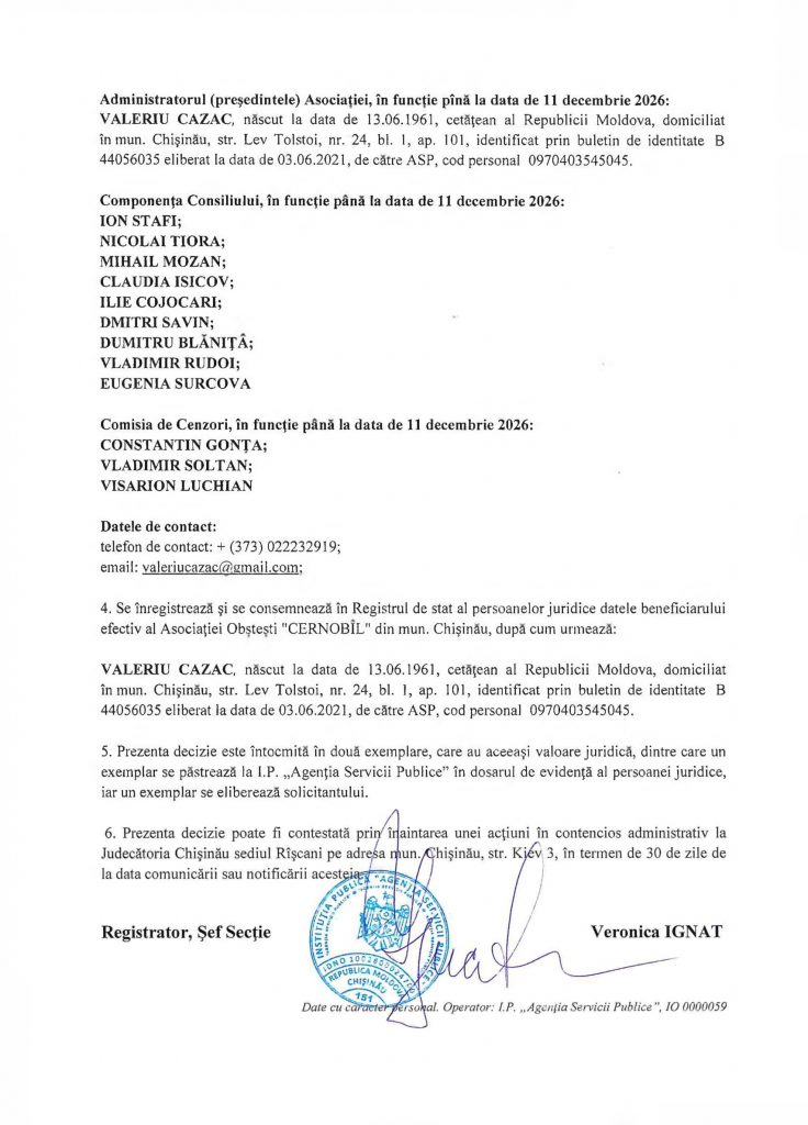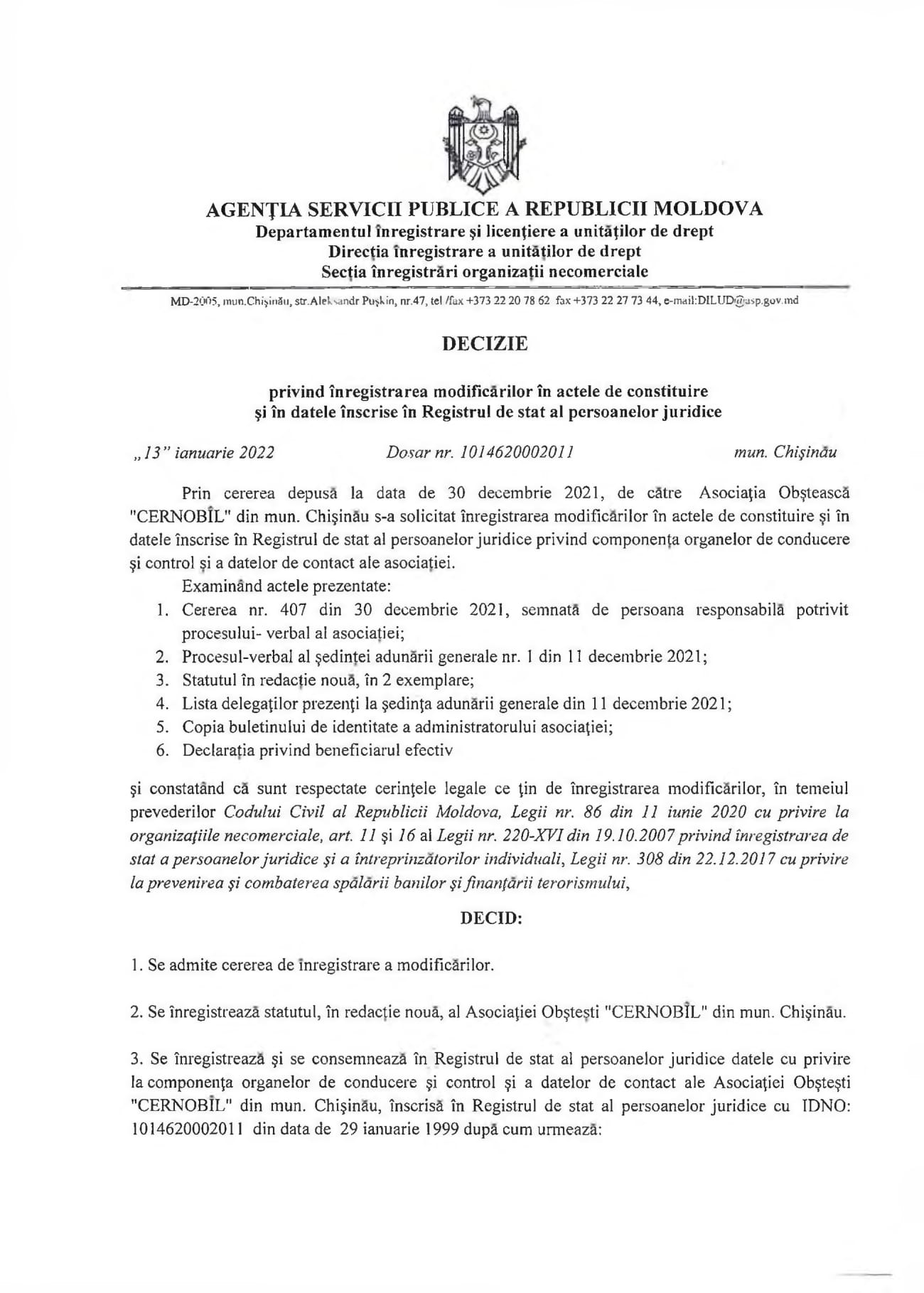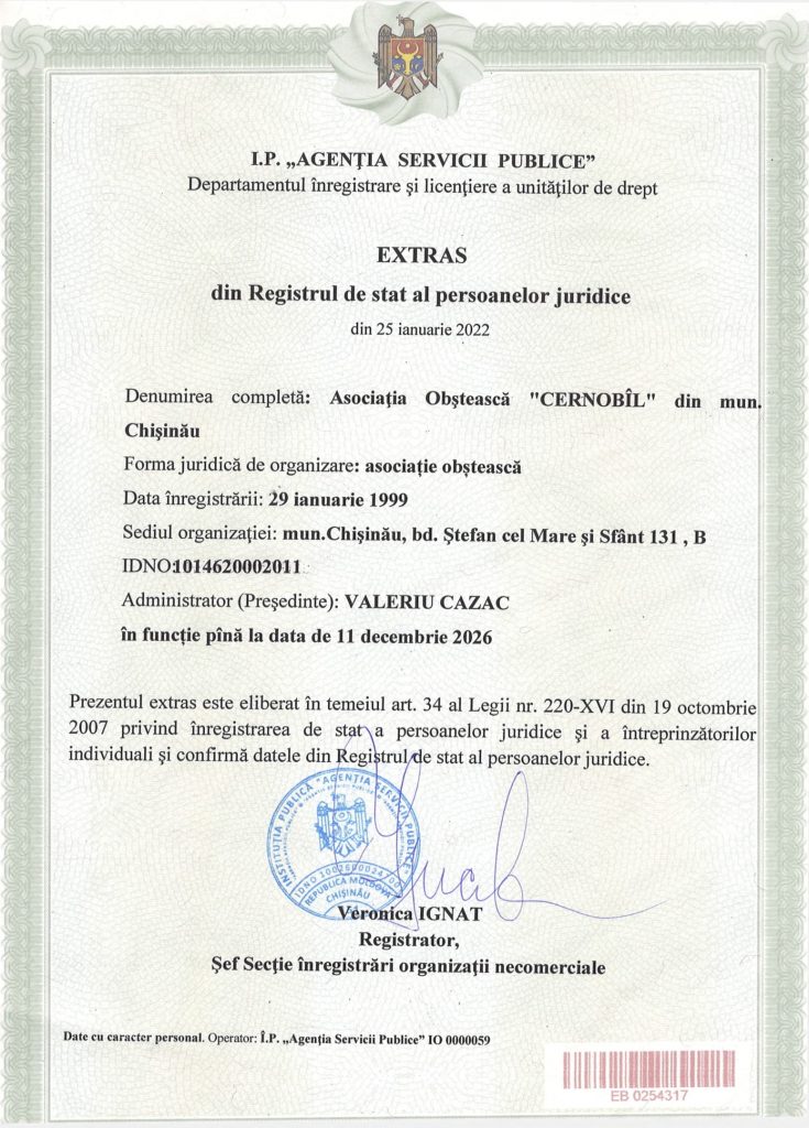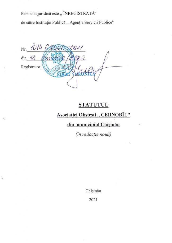 1.2. Denumirea completă: Asociaţia Obştească „CERNOBÎL” din munincipiul Chişinău.